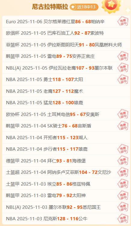 【成绩回顾】近18胜13,昨拿下3战胜,NBL+韩篮甲+Euro 拿下胜利,尼古拉资深作者情报解读再有方法,信心强项情报解读连胜赛事再次出发,长期解读惊喜不断,此前作者创下4次双位数胜战绩,掌握着一手赛事资深情报,本期继续分享充满奇妙体育赛事,敬请大家持续关注!!