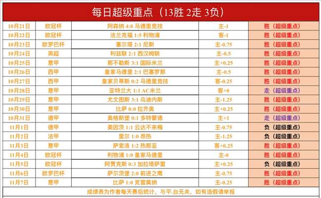 战绩回顾:昨日【每日超级重点】意甲比萨方向完美全胜,【每日超级重点】近16胜13,成绩很出色!解锁文章6战拿到2胜2走2负,成绩还行!意甲比萨、英冠布里斯托城完美全胜,比甲登德、西甲埃尔切走了,意乙斯佩齐亚、德甲狼堡没有打出!总进球数1场,丹麦甲科灵小方向没有打出,总进球数6胜4!赞赏数据昨晚没有发送!鸡锅不追求场次多,追求少而精准,绝不滥竽充数,必须把老铁们的每一份信任都转化为胜利!
