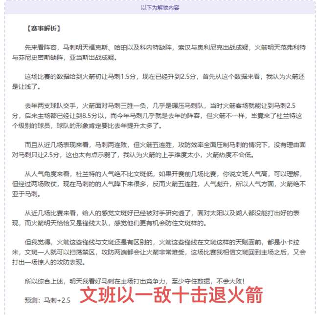 以下为解锁内容:含赛事解析+数据分析+观点参考