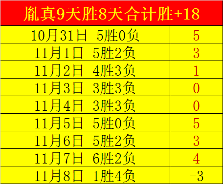 9天胜8天胜+18,傲视群雄的胜+表现。
