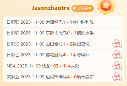 【战绩回顾】近6胜4, 一、美职业近8胜率75%(命中方向美职业迈阿密国际主胜)。