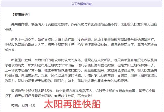 以下为解锁内容:含赛事解析+数据分析+观点参考