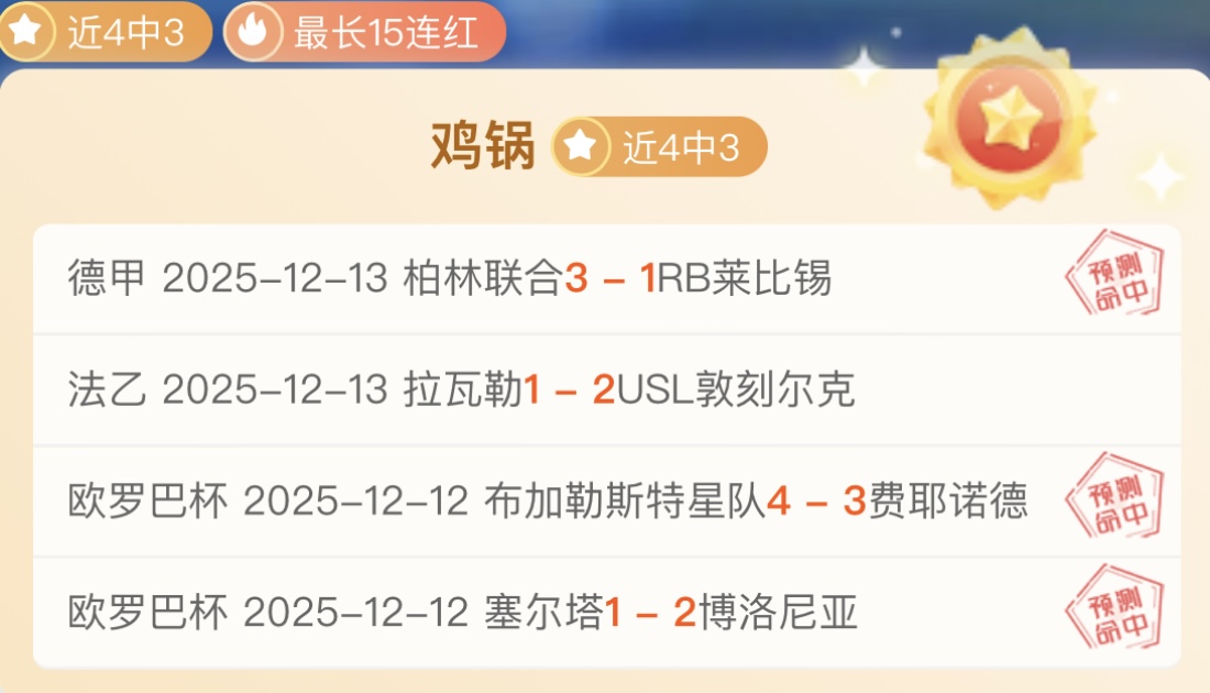 战绩回顾:昨日【每日超级重点】德甲柏林联合方向完美全胜,【每日超级重点】11胜10,成绩非常出色!解锁文章2战拿到1胜1负,成绩一般!总进球数没有发送,总进球数包周依然近16胜11!鸡锅不追求场次多,追求少而精准,绝不滥竽充数,必须把老铁们的每一份信任都转化为胜利!