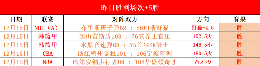【成绩回顾】昨拿下5战胜、韩篮甲二全胜、NBL、CBA、NBA拿下胜利,信心赛事多项拿下连胜!尼古拉资深作者情报解读再有方法,信心强项情报解读连胜赛事再次出发,长期解读惊喜不断,此前作者创下4次双位数胜战绩,掌握着一手赛事资深情报,本期继续分享充满奇妙体育赛事,敬请大家持续关注!!