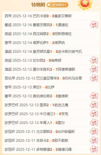 【战绩回顾】目前近16场胜11场。特纳姆将凭借多年深耕足球领域的专业视角,结合独家赛事分析方法,深度解析赛果走向。诚邀各位球迷朋友共同交流探讨,让我们携手冲击高效战绩!