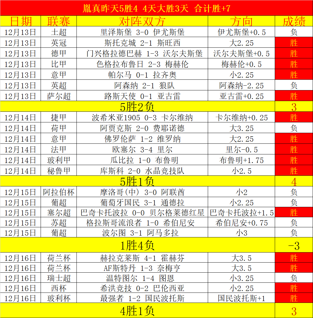 昨天5胜4,近4天大胜3天累计胜+7。11月胜+13,10月胜+12,月发挥非常出色