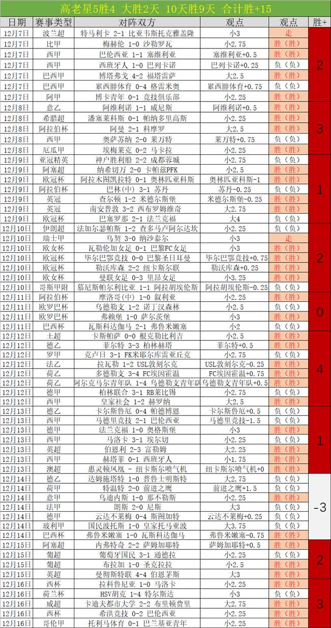 昨天5胜4,大胜2天,近10天胜9天胜+15。12月截至目前胜+17,11月胜+22,10月胜+19,9月胜+11,连续4月双位胜增长