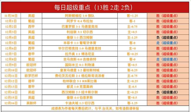 战绩回顾:昨日总计4战拿到3胜1负,近两天总计8战拿到6胜1走1负,成绩很出色!【每日超级重点】英联杯切尔西方向完美全胜,【每日超级重点】15胜13,成绩非常出色!解锁文章3战拿到2胜1负,解锁文章近5胜4,成绩出色!英联杯切尔西、哥伦甲巴兰基亚青年完美全胜,瑞士超锡永没有打出!总进球数1场,国际友谊南非小方向完美全胜,总进球数拿到连胜!鸡锅不追求场次多,追求少而精准,绝不滥竽充数,必须把老铁们的每一份信任都转化为胜利!