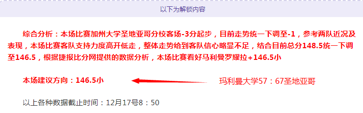 解锁内容包括:综合分析+胜负观点+总分观点
