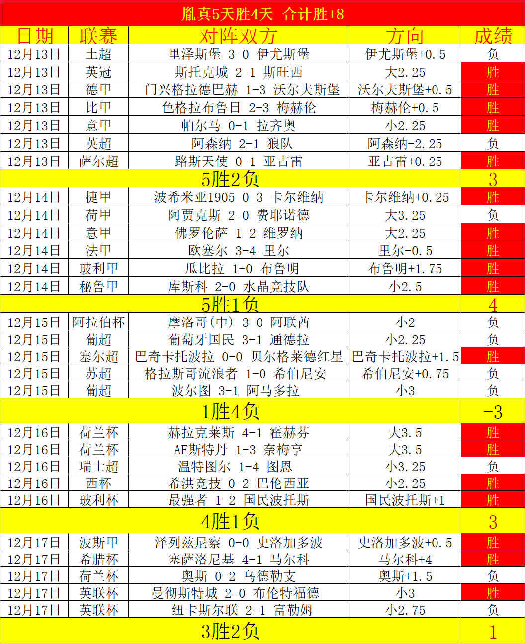 昨天继续胜利,连胜2天合计胜+4,近5天胜4天合计胜+8。11月胜+13,10月胜+12,月发挥非常出色。
