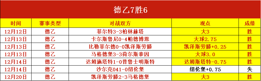 昨天德乙继续胜出,德乙7胜6,今天赛事依旧选择强项系列,持续稳,别错过了!笔者近期前进脚步表现仍然优秀,本日赛程继续出击,争取在稳健的基础上进一步突破!