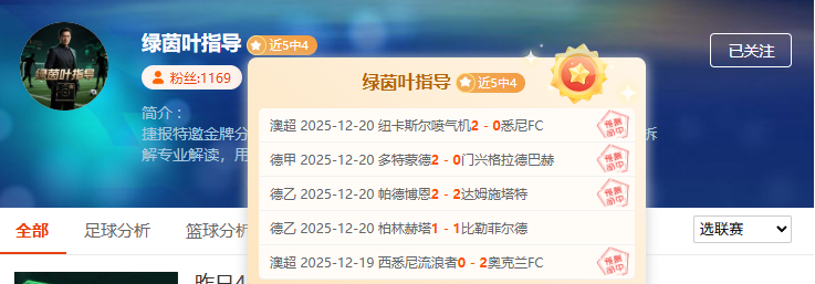 【叶指导优势】2016年国内知名数据分析团队离职,期间组织个人团队深耕足球领域至今已近10年。团队精于情报梳理及数据解读。亚欧赛事数据库全面,见微知著,坚信数据才是解析赛果直观体现。