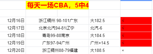 每天精选一场CBA,最近5天拿下了四天,效果还是不错的,继续专心研究这场,共同进步~