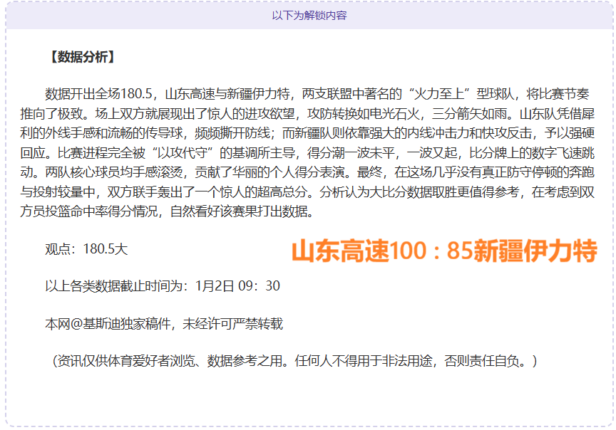 【成绩回顾】近11胜7,昨CBA和韩篮甲获胜!精选比赛拆解本期再创连胜新高度,篮球方向连胜呈现非同凡响,拆解精准比赛继续收获连胜,篮球板块拆解数据勇往直前,资深篮球爱好者,用独立方式拆解赛事再为大家奉上。以下再为大家分享一场精彩赛事,敬请期待!