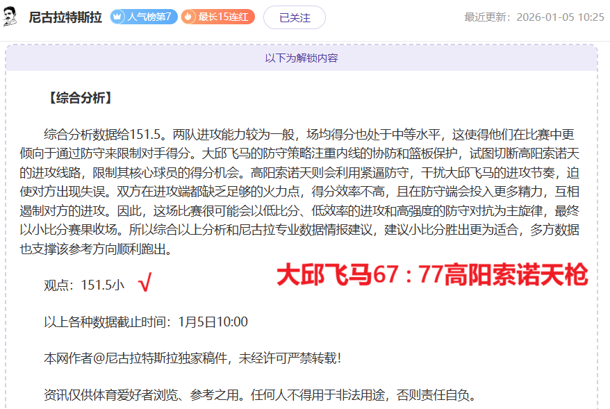 解锁内容包括:综合分析+比赛建议(数据观点+附加观点)