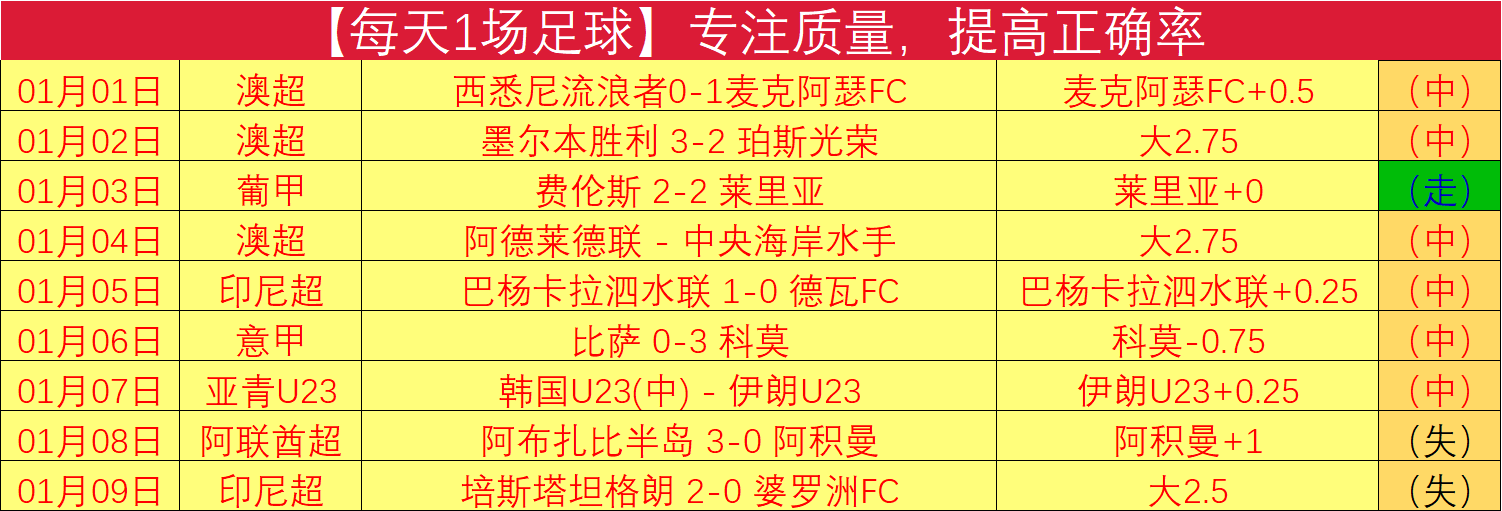 【每天1场足球】专注质量,提高正确率。每天只写1场足球,抓重点,适合长期定投参考。
