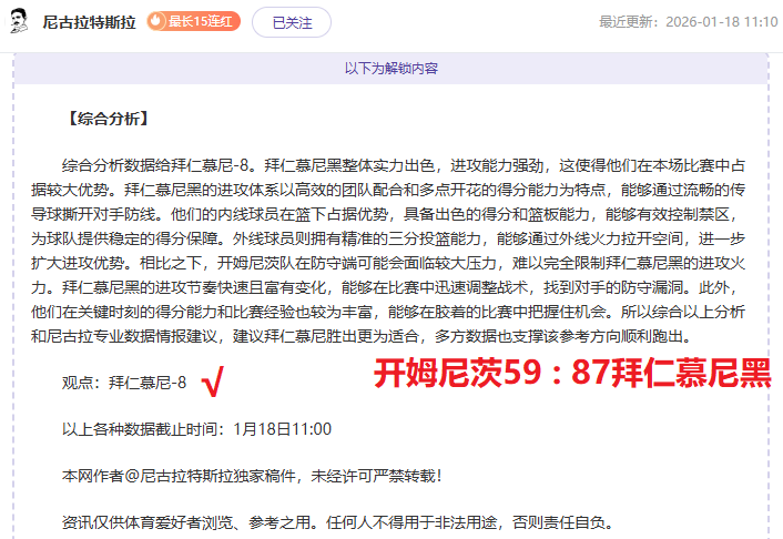 解锁内容包括:综合分析+比赛建议(数据观点+附加观点)