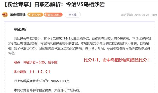黄老师致力于研究各大赛事数据,拥有自己独创的数据模型,挑选的每场比赛都精心研究,我们以长线为主,长期效益非常不错,适合持续关注,保持一个好心态,我们一起共同进步!以下解锁内容包含:综合分析+观点方向+比分预测