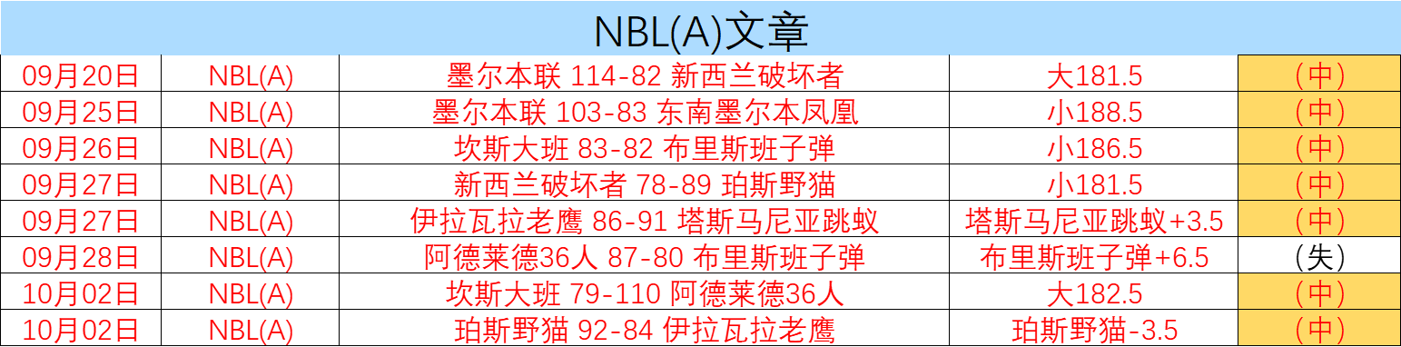 NBL(A) 10/04 15:30 未开场