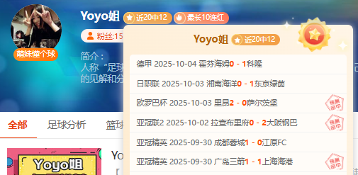 【上期回顾】:昨天私推暂停,不过近5胜4表现不俗!可惜超级重点德甲方案遗憾失利,不过近16胜11状态尚可!——今天核心赛事已确认,信心依旧,各位可点击一下【赞赏】按钮给予鼓励,轻松在“站内信”获取当天新鲜信心专场哦!多一份参考离喜悦再近一步,Yoyo将继续率粉粉们继续前行~
