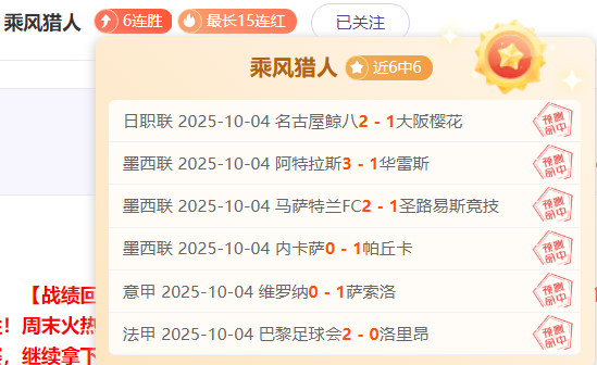 【战绩回顾】昨日目前精选7场全不败,豪取6连胜,法甲打出比分2-0,意甲打出1球进球少拿下,早上墨超3场全胜,日职1胜1平!周末火热来袭,比赛非常丰富,赛事质量佳!乘胜追击,信心强烈,全力分析,只王牌精研有把握的比赛,继续拿下,加油冲全胜!欢迎长期关注猎人。