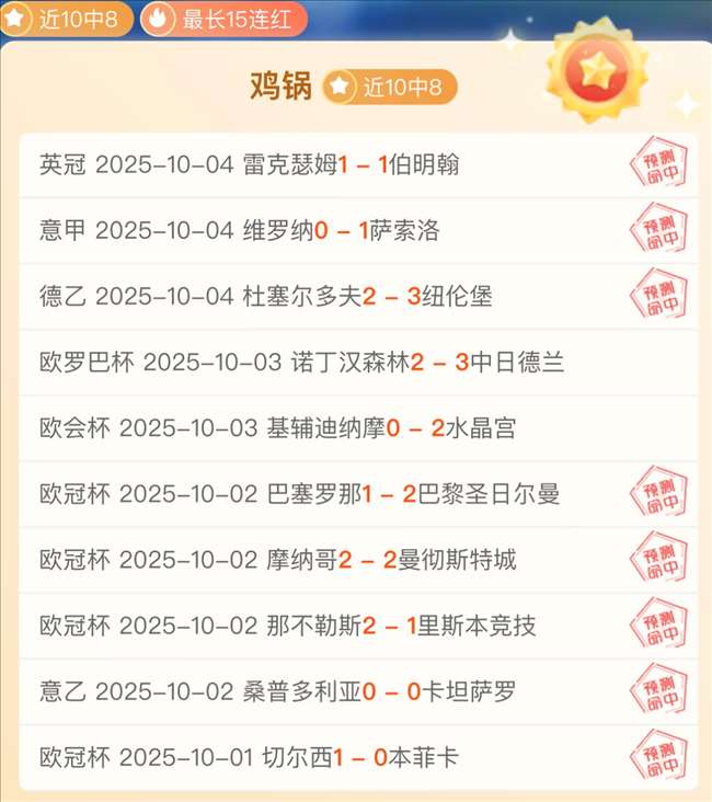 最近更新:2025-10-04 20:14 近10中8最长15连红