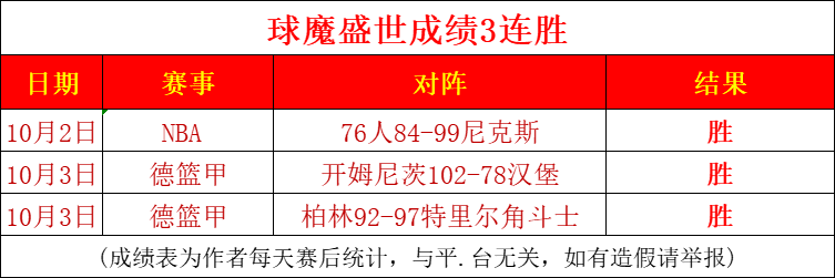 【成绩回顾】昨天送出的两场德篮甲比赛,全部取胜;整体成绩3连胜!状态相当火热;今天继续为大家送擅长的赛事,欢迎大家点点关注,继续为大家一起分享更多胜利的喜悦。
