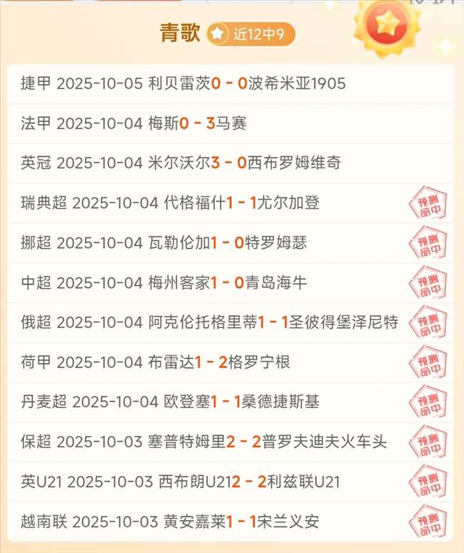 青歌简报:昨日比较可惜,高开低走了,未能一路红龙,也感谢老哥们的鼎力支持,今日整体赛事质量尚可,有信心就此反弹!!