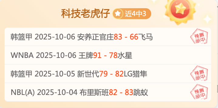 【赛事回顾】昨天看好的韩篮甲安养成功打出,今天继续精选一场韩篮甲。韩篮甲近4场取得3胜。