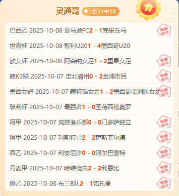 「灵通哥」11中9:凭借广泛的情报网络精准捕捉赛场变局,近期预测覆盖从巴西乙、韩K2联到欧女杯等全球赛事,展现出强大的跨联赛信息整合能力。跟紧灵通哥,掌握一手赛事情报。