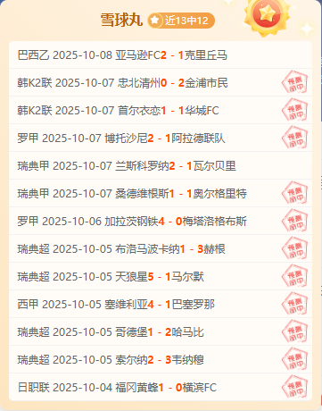 「雪球丸」13中11:基本面与数据结合大师,擅长从球队战术、阵容变化中捕捉投资机会。近期13场预测豪取11场胜利,连胜势头强劲,堪称赛场“预言家”。