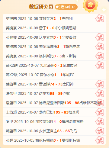 「数据研究员」14中12:深度数据拆解专家,依托庞大的历史数据库,通过算法模型精准捕捉赛场规律。近期状态火热,14场预测命中12场,用硬核数据为您揭示比赛真相。