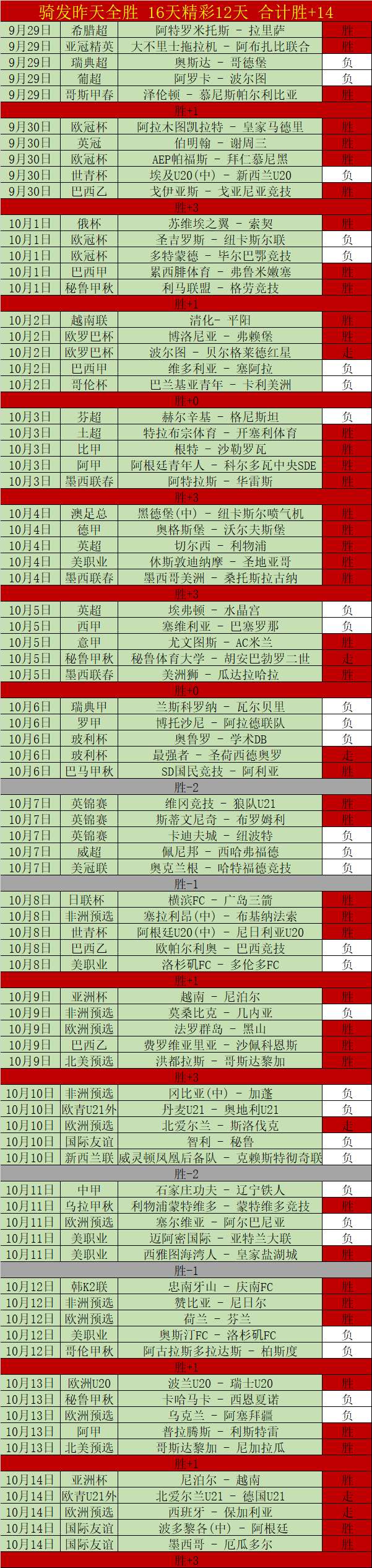 昨天全胜表现,连续3天取得胜利,近16天胜12天,胜+14非常惊人,继续骄人胜+持续增长。