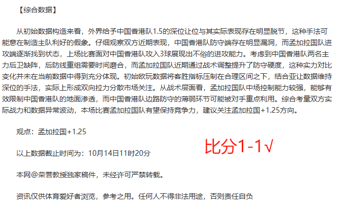 昨天双胜。最高打下14连胜的表现已见证实力。今天继续奉上强项赛事系列,各线赛事都能保证清晰的解读思路与靠谱的选择方向!截至昨天荣誉教授已经有4076场解读经验,今天继续精选5场,多元化的赛事系列,以更高连胜胜利率绩迎接5000场记录来临,关注荣誉教授,成为荣誉教授的好伙伴!