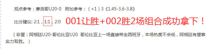 【上期回顾】拿下全胜,再接再厉!昨精选1中1,摩洛哥比分对,方向平,近20中17。昨小明送上世青赛组合摩洛哥+阿根廷2420%反还稳稳收下,比赛少也有不错收成,今依然精选1场,附赠1场回馈大家支持,加油!