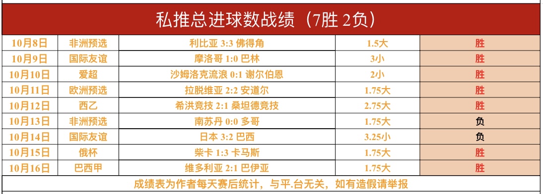 战绩回顾:解锁文章冲击10连胜!昨日总计4战全胜,非常强势!解锁文章近12战拿到9胜3走,强势豪取9连胜!【超级重点】拿到3连胜!总进球数1场,巴西甲巴伊亚大方向稳稳胜利,总进球数近9胜7!赞赏数据昨晚没有发送,赞赏数据依然近19胜14,成绩很出色!鸡锅不追求场次多,追求少而精准,绝不滥竽充数,必须把老铁们的每一份信任都转化为胜利!