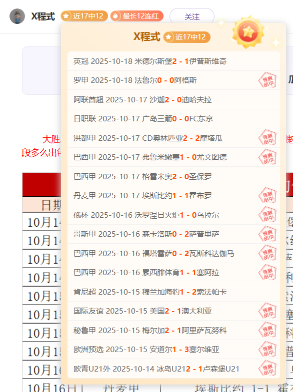 最近更新:2025-10-18 11:05 近20中13最长12连红