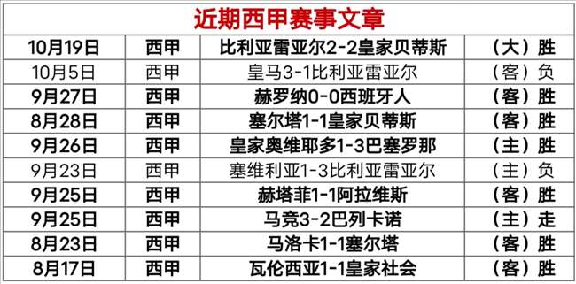 最近更新:2025-10-19 13:14 西甲近13胜率77%近6中4