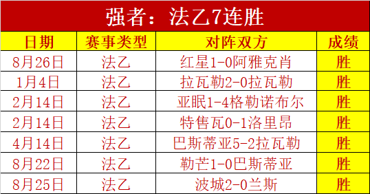法乙7连胜发挥,今天的法乙肯定值得支持了。昨7胜5,连胜3天,近27天胜18天,累计胜+19,整体发挥值得认可,显然胜利的绝对优势占据主导
