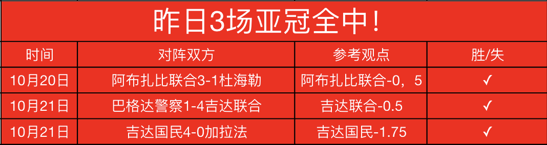 战绩回顾:昨日表现不俗,3场亚冠全胜!3场亚冠全胜!是取得了5胜3失的出色战绩,2场意甲和西甲小失一半,今天精选亚冠继续加油,冲!