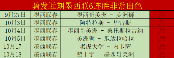 墨西联暴发胜利6连胜,美洲赛事继续精彩。4天胜3天合计胜+4,今天赛事十分在行!