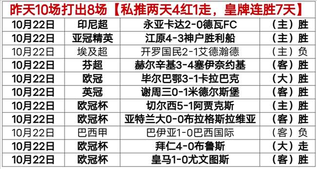 【战绩回顾】昨天文章+私推10胜8炸裂红;其中私推1红1走,近两天私推4红1走不败!皇牌场次(3:1)继续过关;皇牌连胜7天,连胜7天!——今天乘胜追击。