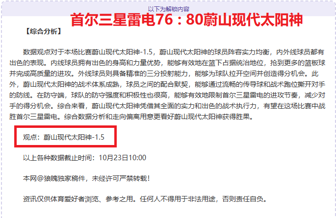 解锁内容包括:综合大数据分析+分解赛事走向+比赛建议+作者观点数据