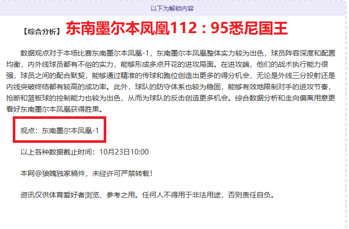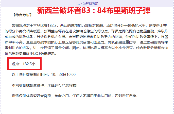 解锁内容包括:综合大数据分析+分解赛事走向+比赛建议+作者观点数据