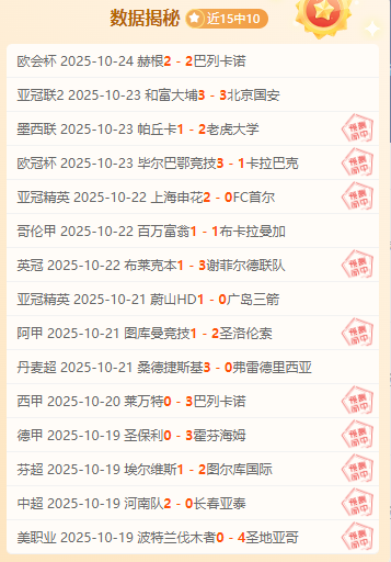 目前成绩15胜10,整体稳定。祝大家生活如足球赛场般精彩,好运相伴,胜利连连!数据揭秘保持长胜心态,看到的朋友不要再犹豫了。