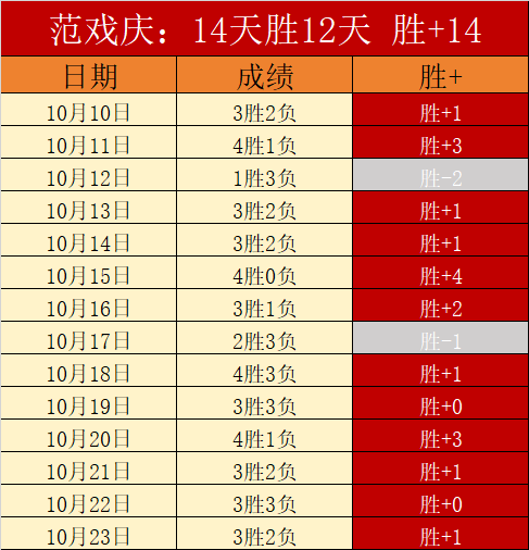 中超10月全胜状态,可以继续冲胜的关键赛事。昨天胜利,14天胜12天,合计胜+14,胜+表现尤其突出。9月15日打出10连胜,17连胜记录也是在近期出现的,大胜是频繁出现的高超实力。
