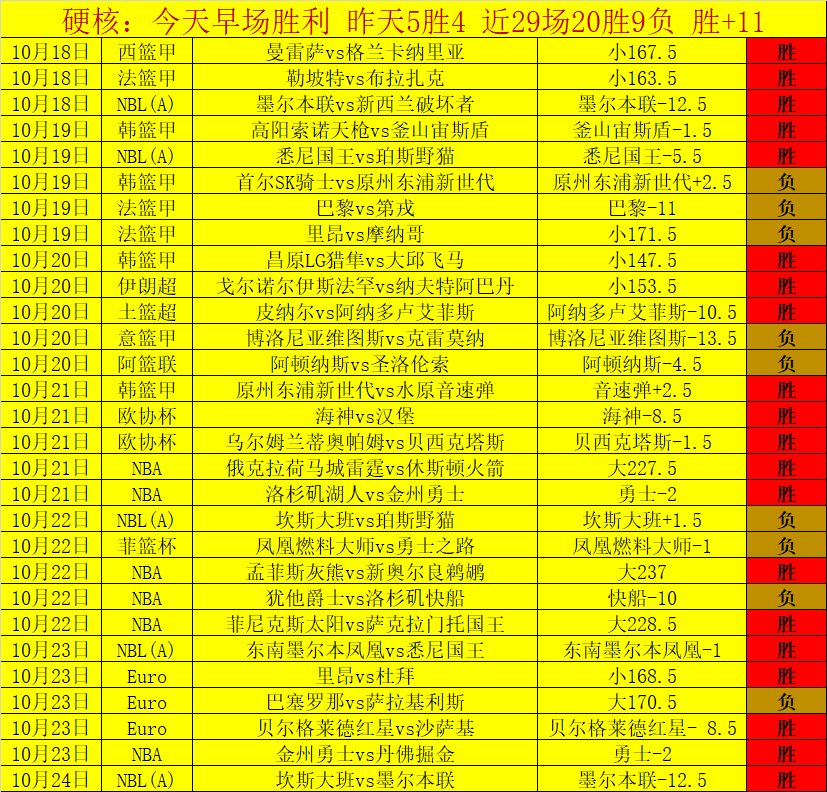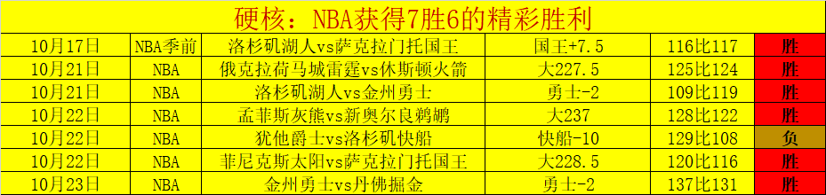 NBA昨天胜利,NBA取得7胜6精彩胜利。早场胜利,昨天5胜4,18号至今取得20胜9负,胜+11很出色!