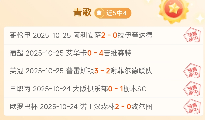 青歌简报:在刚结束的强项赛事巴西乙再次拿下后近期整体走势平稳来到了6中5,今日拿手赛事非常多,感谢各位的大力支持,继续努力,保持高光时刻!