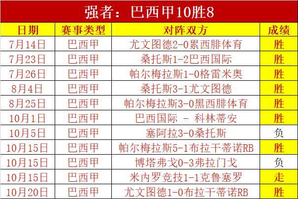 巴西甲10胜8,美洲赛事发挥真的出色。近8天胜6天胜+11,近32天胜23天,累计胜+22,整体发挥非常值得认可,显然胜利的绝对优势占据主导