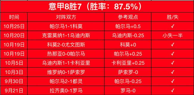 战绩回顾:精选近4胜3!昨晚赞赏的2场比赛是全部拿下,霍芬海姆主场3-1海登海姆拿下!大巴黎客场3-0拿下!今日带来擅长意甲参考,目前意甲8胜7,加油!